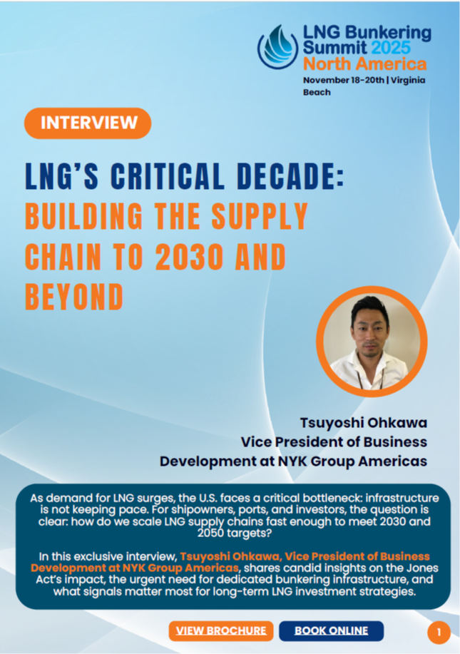 In this exclusive interview, Tsuyoshi Ohkawa, Vice President of Business Development at NYK Group Americas, shares candid insights on the Jones Act’s impact, the urgent need for dedicated bunkering infrastructure, and what signals matter most for long-term LNG investment strategies.